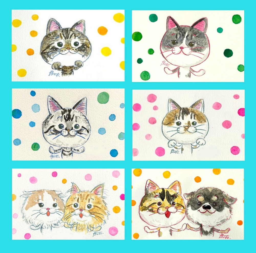 オーダーを受けて、“実在するネコちゃんたち”をキャラクター化したイラストを描く。
